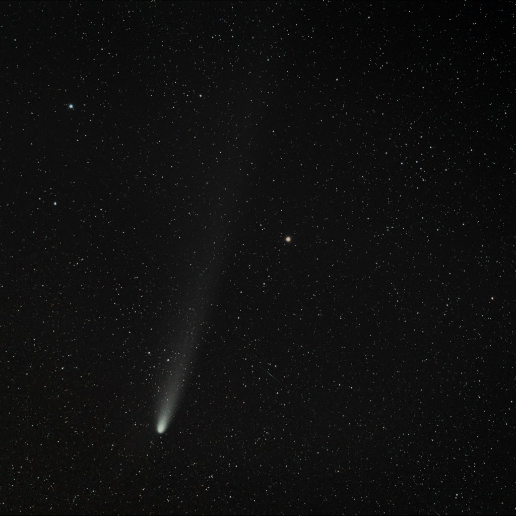 (Comet Neowise, back in July 2020; with a camera and a tripod; four images stacked)